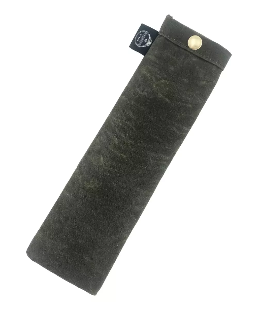 This is the perfect waxed canvas bag just for your spork, fitting utensils up to 22cm . The pouch snaps shut so the spork doesn’t slide out. The tiny bag itself measures 24.5cm x 7.5cm made out of waxed canvas with durable outdoor thread and a quality snap button.