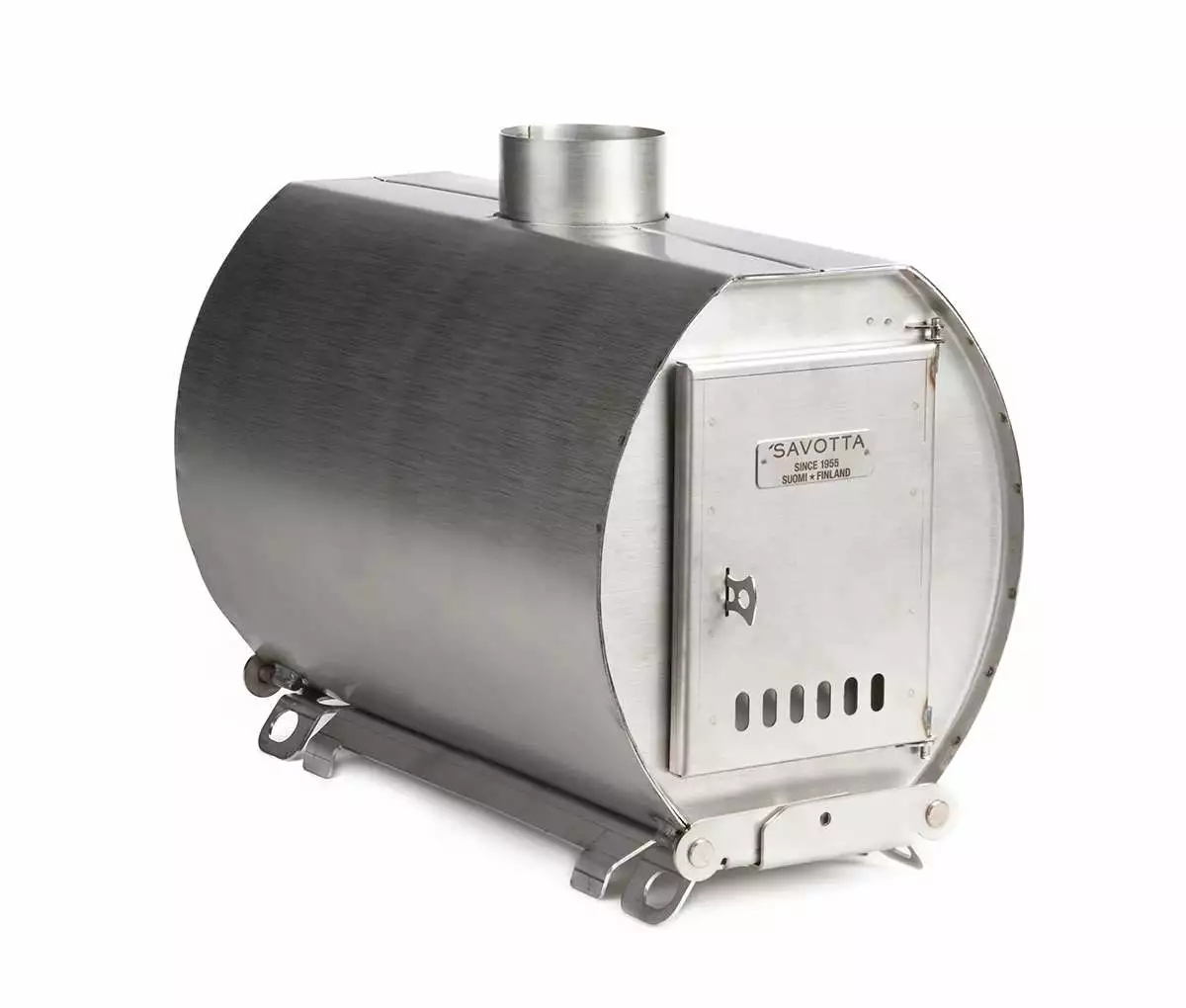 The WS-400 is compact enough for carrying strapped on top of a backpack or packed into an ahkio sled or scow sled. The feet fold neatly away for transport and are quickly deployed for operation, the cutouts on the bottom of the feet allow you to use long pieces of wood as a base for the stove – raising it higher up for easier use and better heat emission inside a tent.