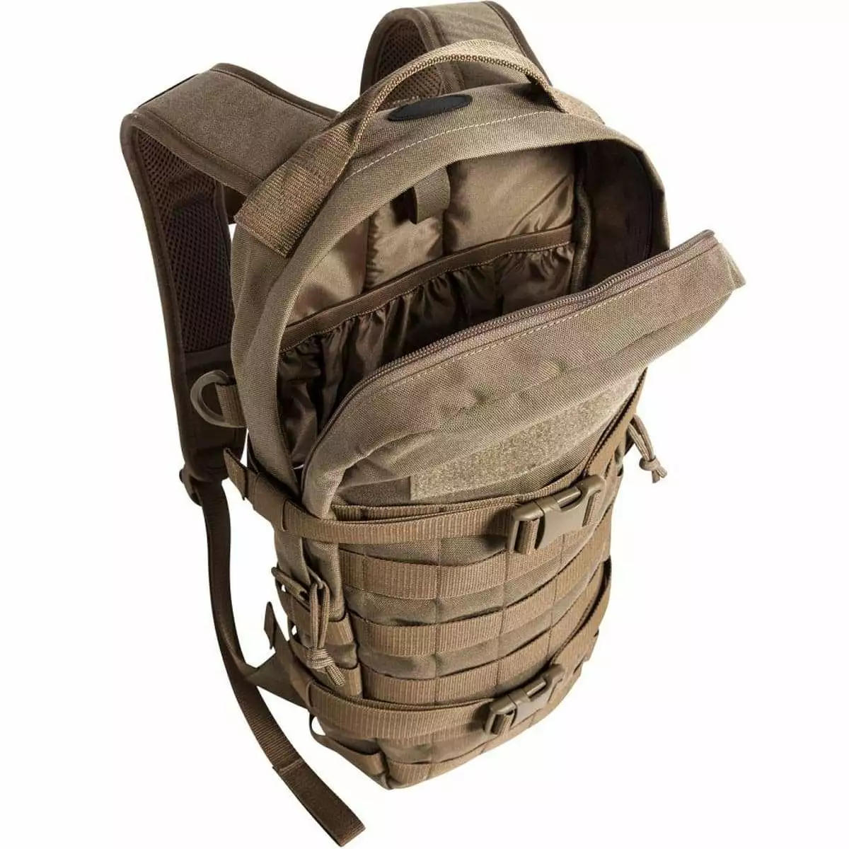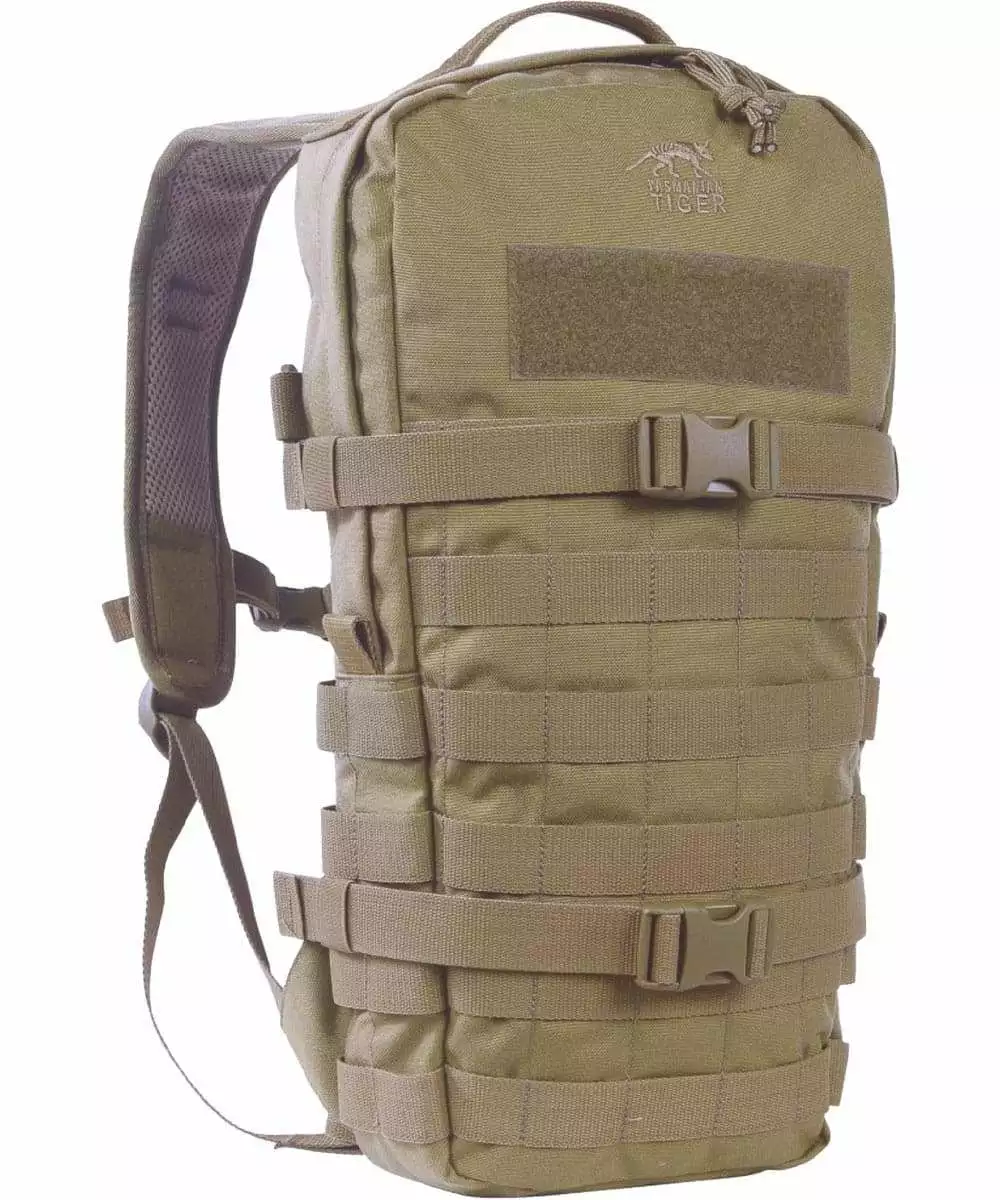 Robust daypack for universal use with one large main compartment and a capacity of 9 litres. Two completely circumferential compression straps reduce the volume if necessary, while the MOLLE system on the front and sides can be used for individual expansion. The backpack is also compatible for a hydration system.